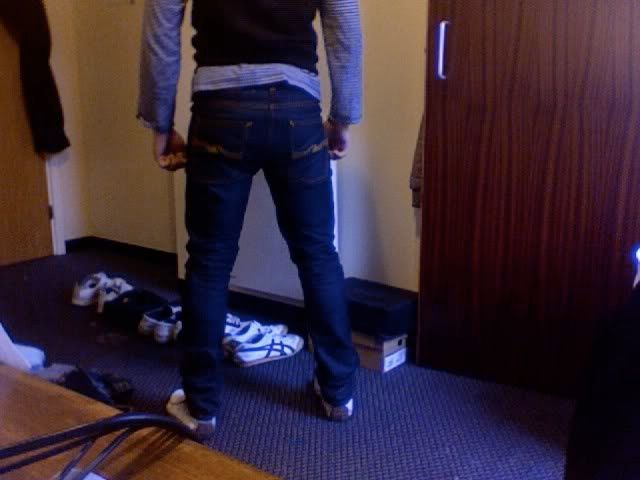 slim jim is a slimmer cut in comparison to my the other 2 raw denims, a very slim fit i must say. i reckon it is one of best cutting nudie has.